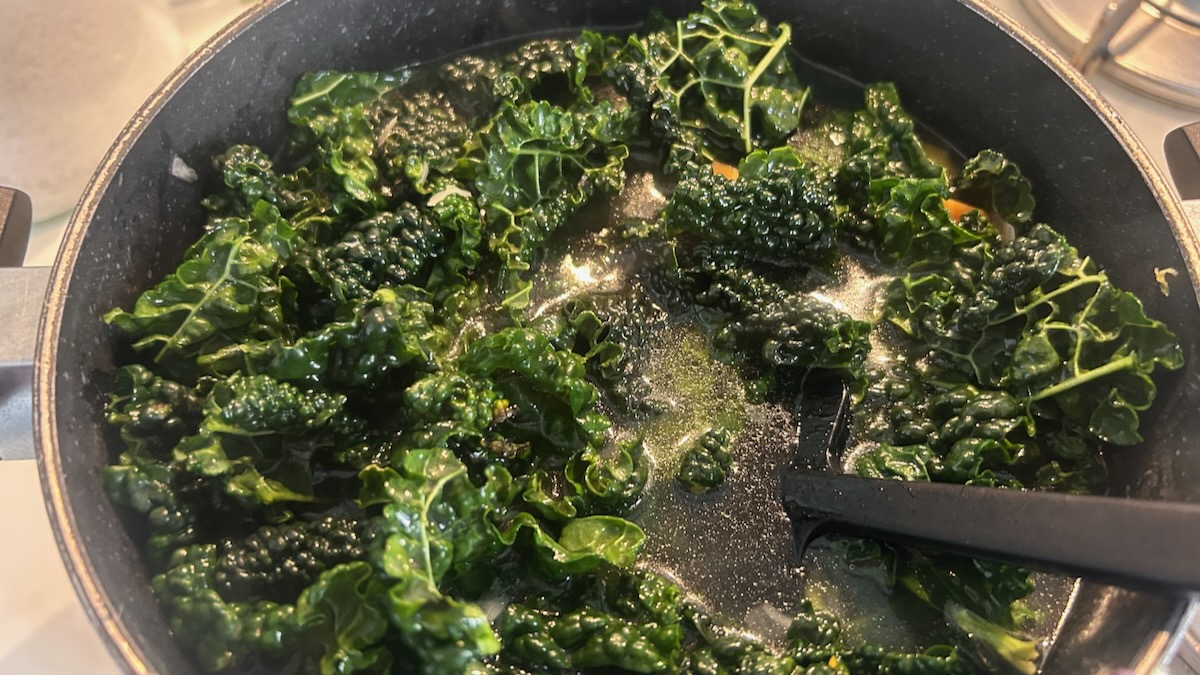 - Aggiungi il cavolo nero tagliato e mescola bene per far amalgamare tutti gli ingredienti.